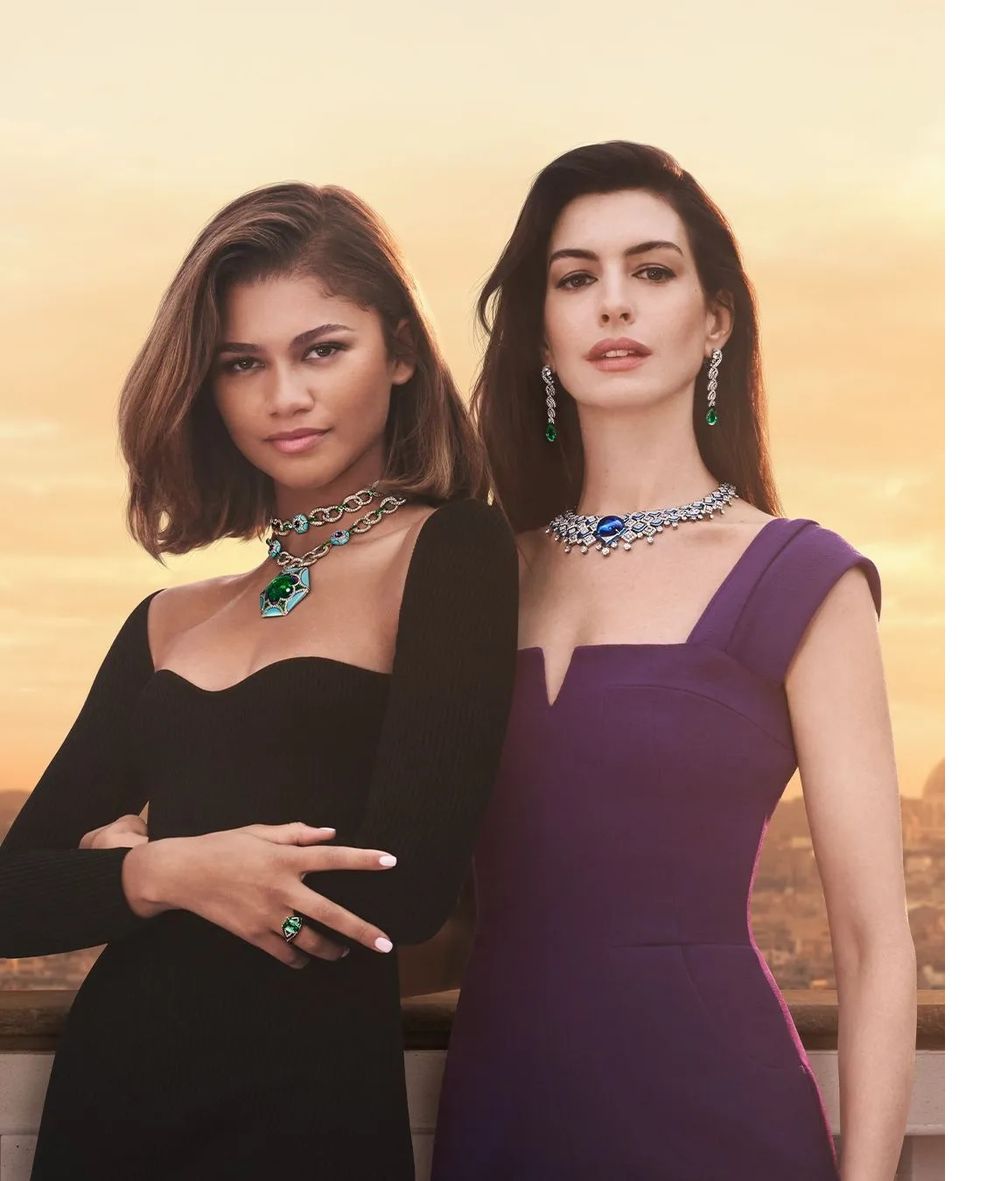 Зендея и Энн Хэтэуэй в рекламной кампании Bulgari Unexpected Wonders (любезно предоставлено Bulgari):