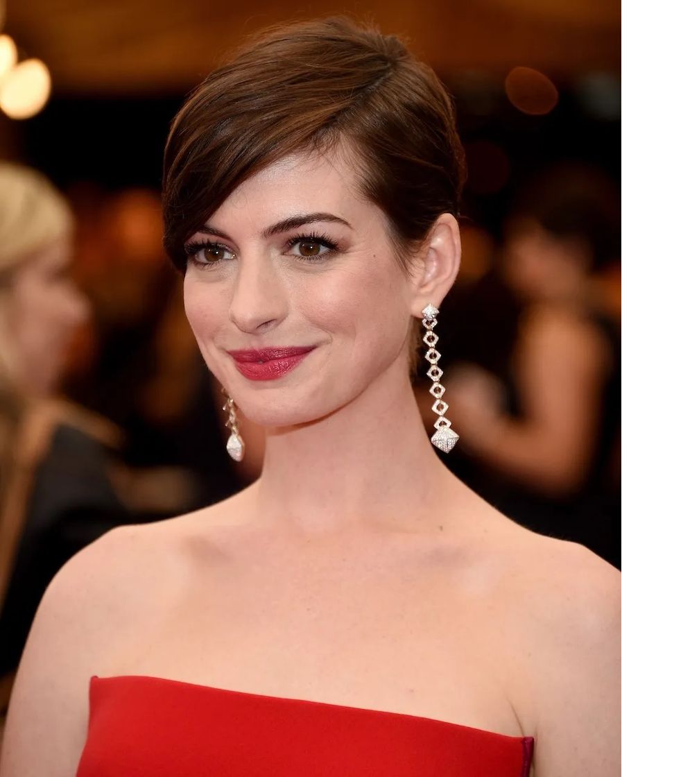 Хэтэуэй получила премию «Оскар» в 2013 году за роль Фантины в фильме «Отверженные» в нежно-розовом платье Prada, бриллиантовых серьгах-гвоздиках и достойном победительницы колье Tiffany & Co. с бриллиантовыми цветами, которое элегантно ниспадало по спине. Украшение идеально сочеталось с перекрещивающимися бретелями платья.