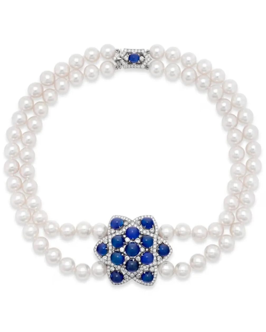 Но одна особая драгоценность привлекла внимание зрителей в финальных сценах фильма и произвела на всех неизгладимое впечатление. На встречу с Джо Брэдли, персонажем Грегори Пека, она надела элегантное колье с двумя нитями круглого культивированного жемчуга и подвеской с сапфирами-кабошонами и круглыми природными бриллиантами весом более 6 карат, оправленными в 18-каратное белое золото.