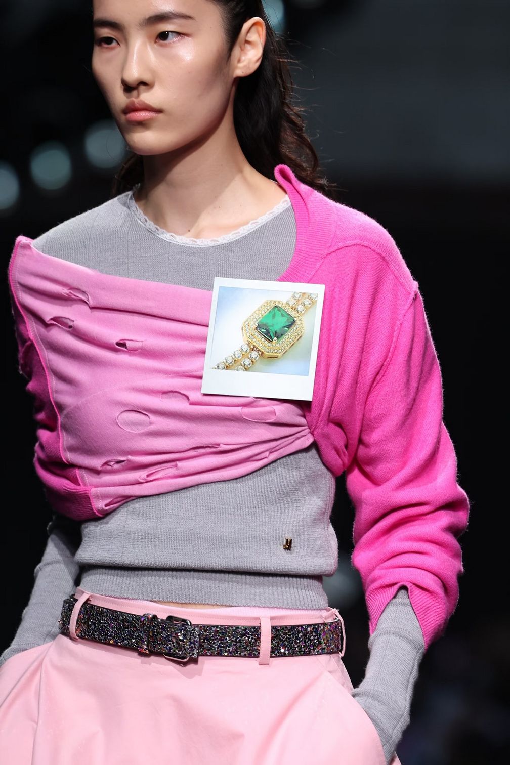 И говоря о смелости. Moschino использует броши провокационно, прикалывая полароидные снимки с изображением драгоценности. Этот демократичный аксессуар избавляется от ауры символа статуса, которую он когда-то имел.