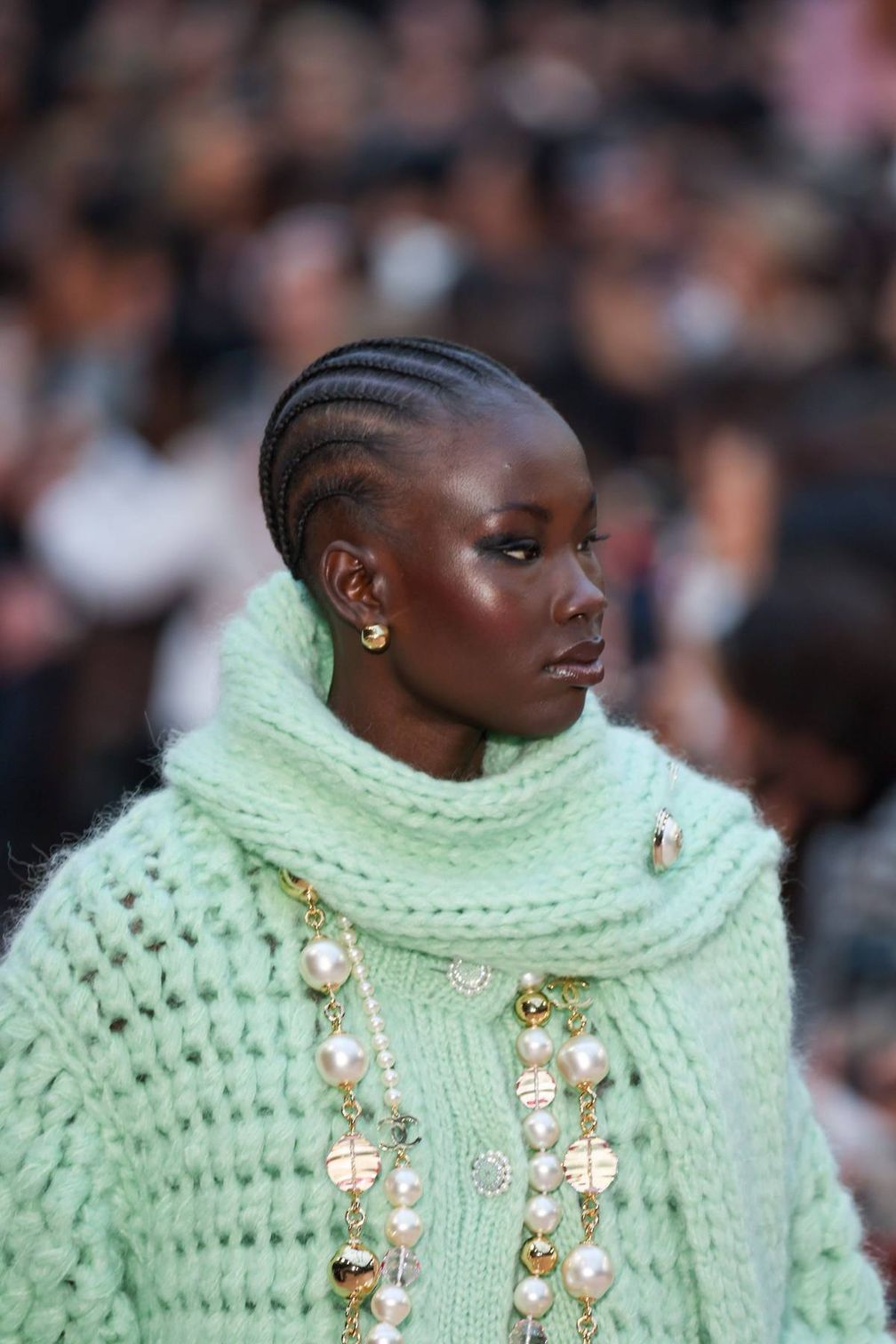 И говоря об английских булавках. Chanel создает булавку, украшенную крупной жемчужиной, которую прикрепляет к толстому шерстяному свитеру. Доказательство того, что этот аксессуар можно прикрепить куда угодно, и он не будет выглядеть неуместно.