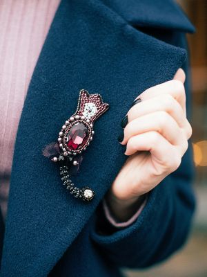 Броши в последние годы начали заново завоевывать модные подиумы. Когда-то эти изделия служили фурнитурой для скрепления одежды, а сейчас они считаются стильным аксессуаром. Эти украшения называют универсальными из-за способности вписываться практически в любой гардероб. К тому же, они прекрасно сочетаются даже с верхней одеждой. Именно поэтому утонченный аксессуар нередко комбинируют с пальто.