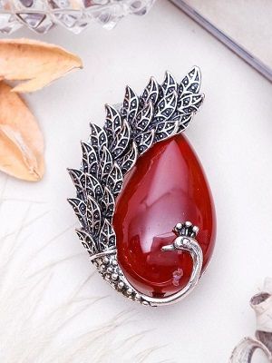 Броши с сердоликом представлены в самых разных вариациях. Особенно часто встречаются украшения с растительным, цветочным дизайном, а также в форме животных, птиц, бабочек. Прелестно смотрятся изделия в виде гроздей ярко-оранжевых ягод с лепестками из серебра.