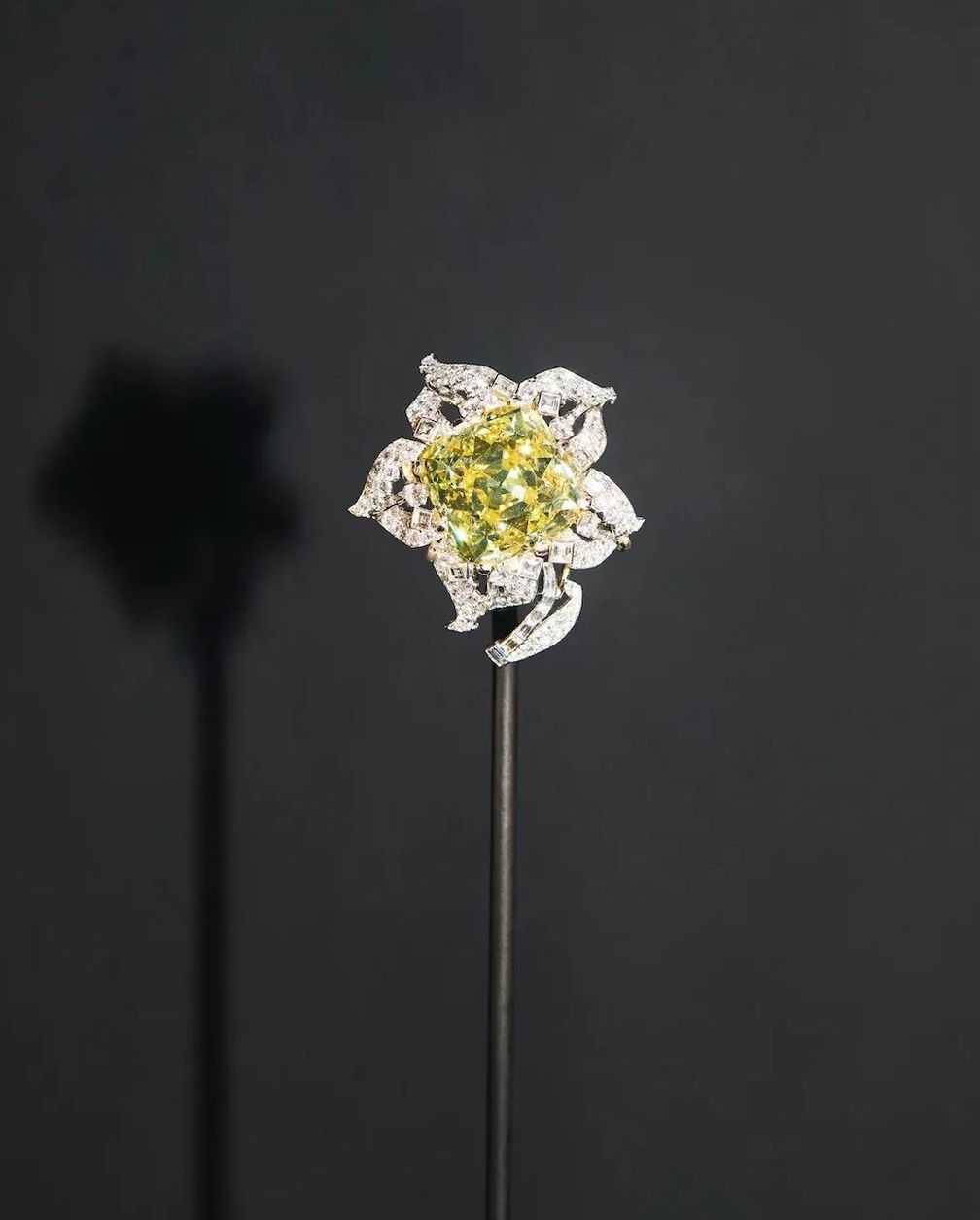 Брошь Allnatt: Cartier London, 1953 год. Бриллиант ярко-желтого цвета, весом 101,29 карата, бриллианты и платина. Частная коллекция: