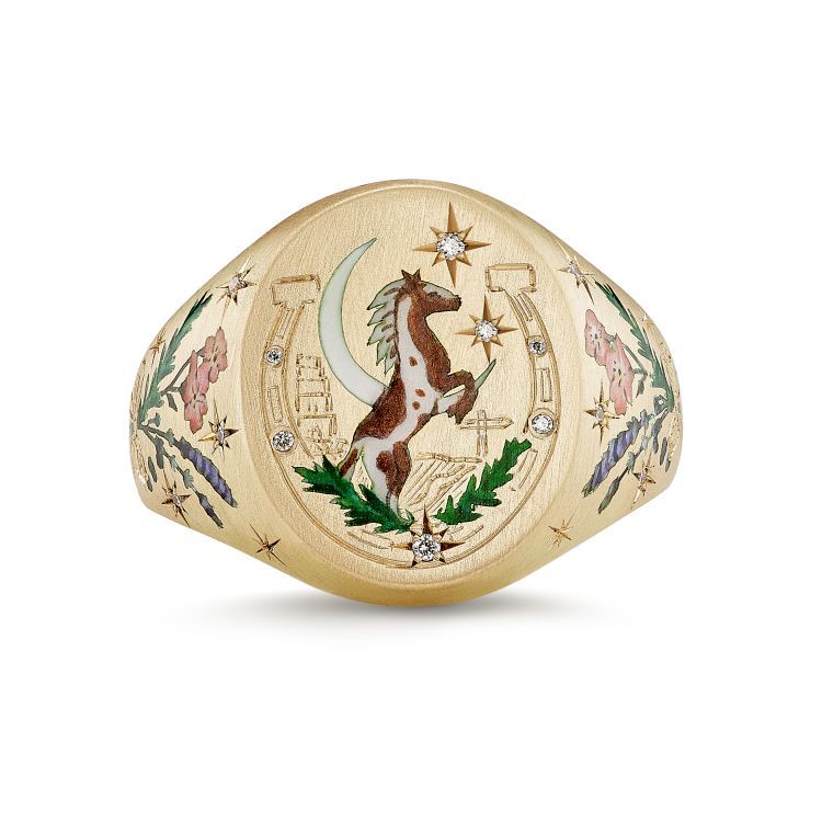 Кольцо Traveller’s Tale из 18-каратного желтого золота с эмалью champlevé и бриллиантами (Cece Jewellery):
