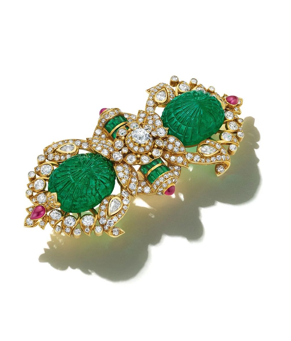 Также можно приобрести подписанные сокровища из знаменитой коллекции Маргарет Томпсон Биддл, в том числе брошь от Cartier с изумрудами, бриллиантами и рубинами, напоминающую об очаровании 1945 года. Эта искусная вещь с мастерски вырезанными изумрудами, рубинами-кабошонами и природными бриллиантами, свидетельствующая о неподвластной времени элегантности своей эпохи, оценивается в $ 200 000 — $ 300 000. Не менее очаровательна тиара от Chaumet в стиле ар-деко, датируемая 1930 годом, воплощение гламурного духа эпохи джаза, за которую, как ожидается, будет выручено от $ 50 000 до $ 70 000.