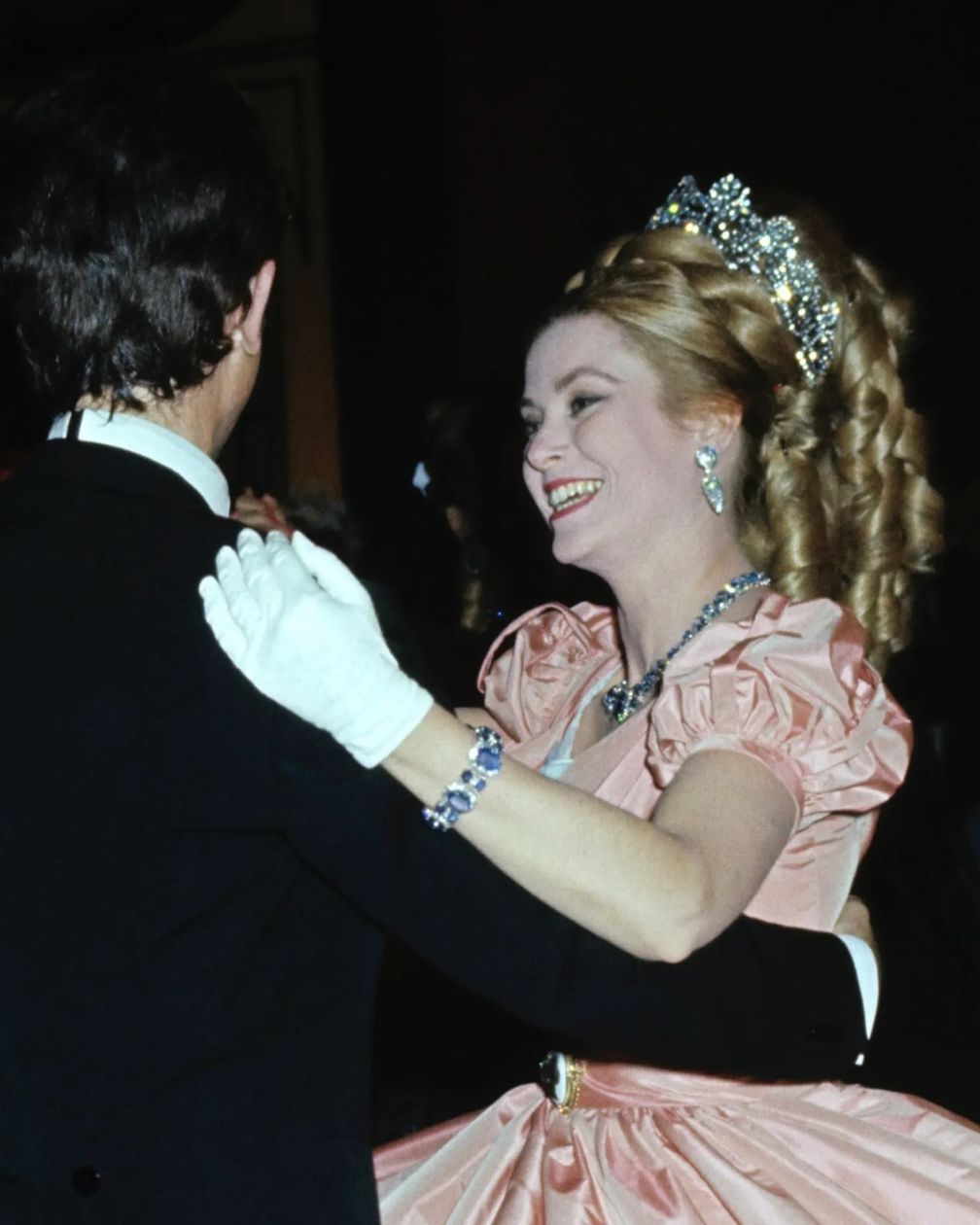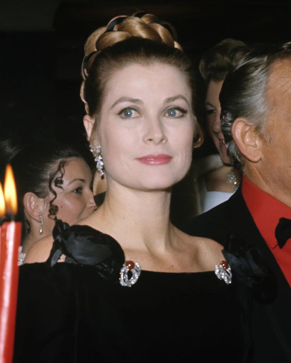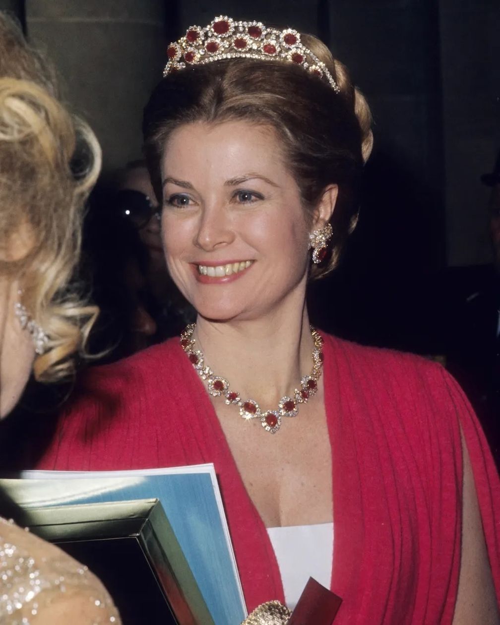 Грейс Келли надела рубиновую тиару от Van Cleef & Arpels, символизирующую цвета Монако