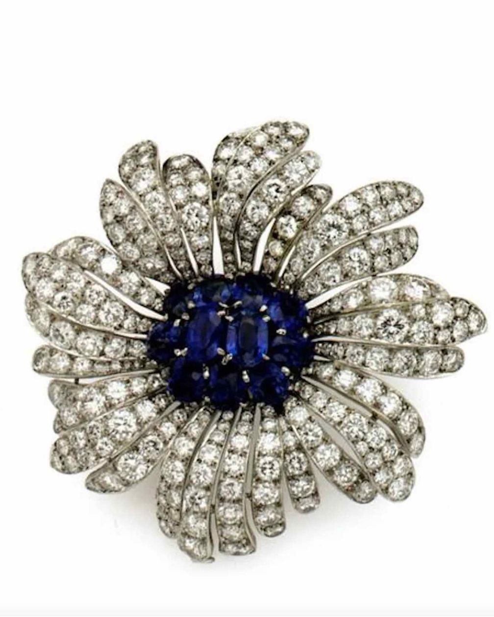 Брошь Грейс Келли «Ромашка» с бриллиантами и сапфирами от Van Cleef & Arpels, подаренная принцем Ренье III