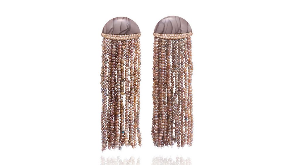 Серьги NatureScapes от Assael из 18-каратного розового золота с яшмой Willow Creek, бриллиантами и мелким жемчугом: