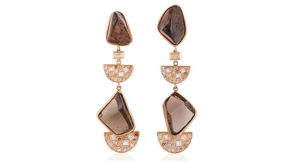 Длинные серьги Sequence от Clara Chehab из 18-каратного розового золота с необработанным коричневым кварцем, белыми бриллиантами и бриллиантами цвета шампанского: