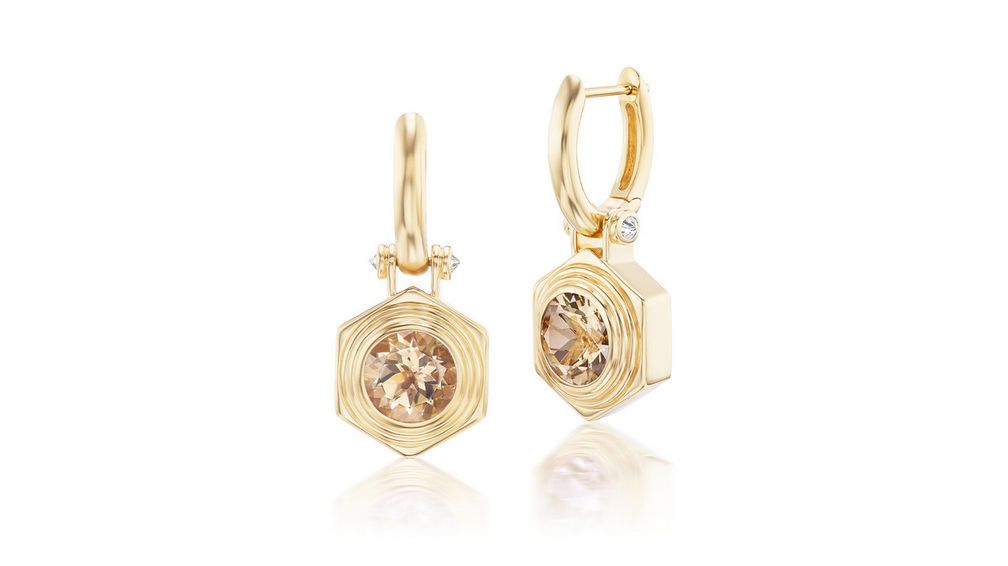 Серьги Hexed от Harwell Godfrey из 18-каратного желтого золота с дымчатым топазом: