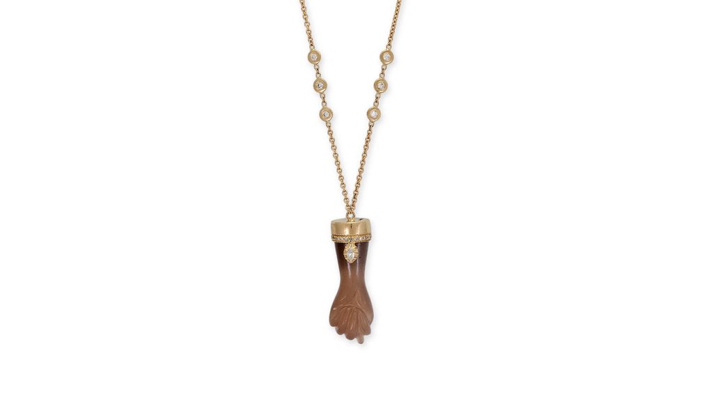 Ожерелье Figa от Jacquie Aiche из 14-каратного желтого золота с бриллиантовым паве и коричневым лунным камнем: