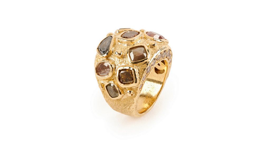 Кольцо от Katy Briscoe из 18-каратного желтого золота с бриллиантами огранки роза коньячного цвета: