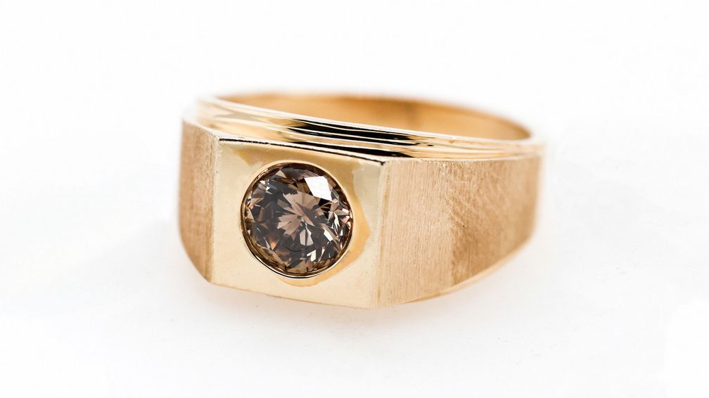 Мужское кольцо от Levy’s из 14-каратного желтого золота с бриллиантом коньячного цвета: