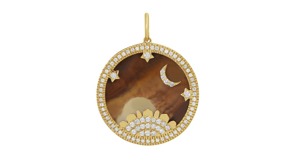 Медальон Starry Night от Lionheart из 14-каратного желтого золота и коричневого перламутра с белыми бриллиантами: