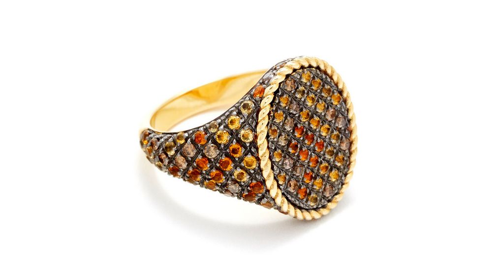 Кольцо Button от Carina Hardy из 18-каратного желтого золота с коричневым бриллиантом и паве из желтых сапфиров:
