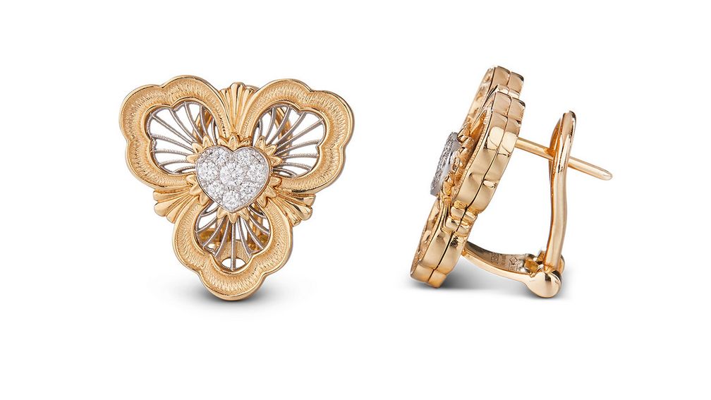 Серьги Opera Tulle в форме сердца из золота с бриллиантами.