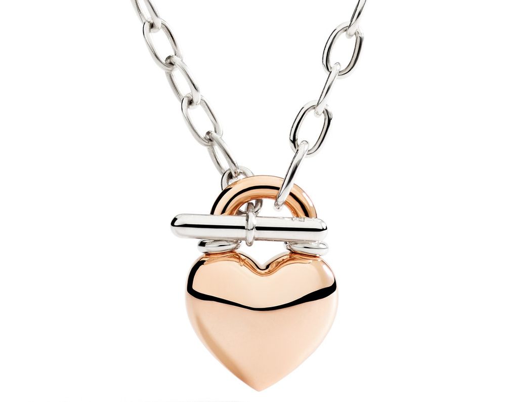 Капсульная коллекция Connectinghearts от Dodo с сердцем из 9-каратного розового золота, цепочкой из серебра 925 пробы и Т-образной перекладиной из 9-каратного розового золота.