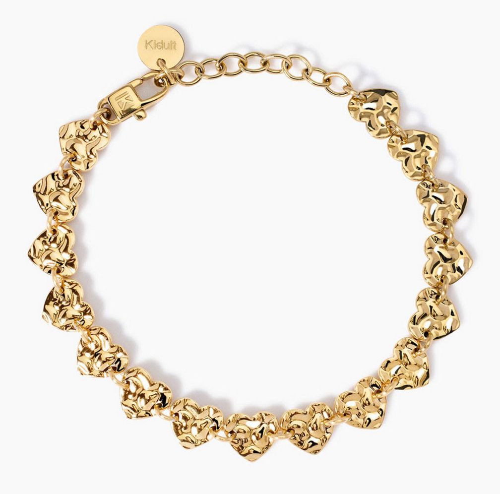 Браслет Style Collection с сердечками из позолоченной стали с кованым эффектом.