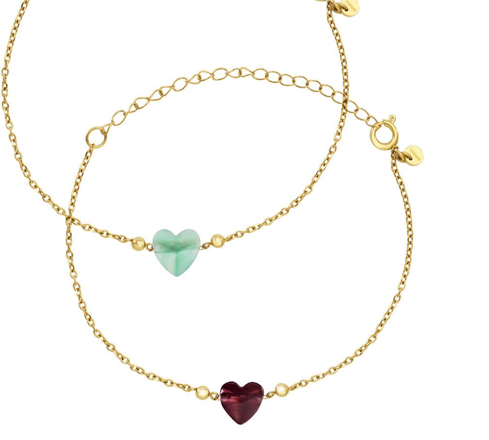 Коллекция Candy из стали с IP-позолотой и гранеными трехмерными сердцами из родолита или авантюрина.