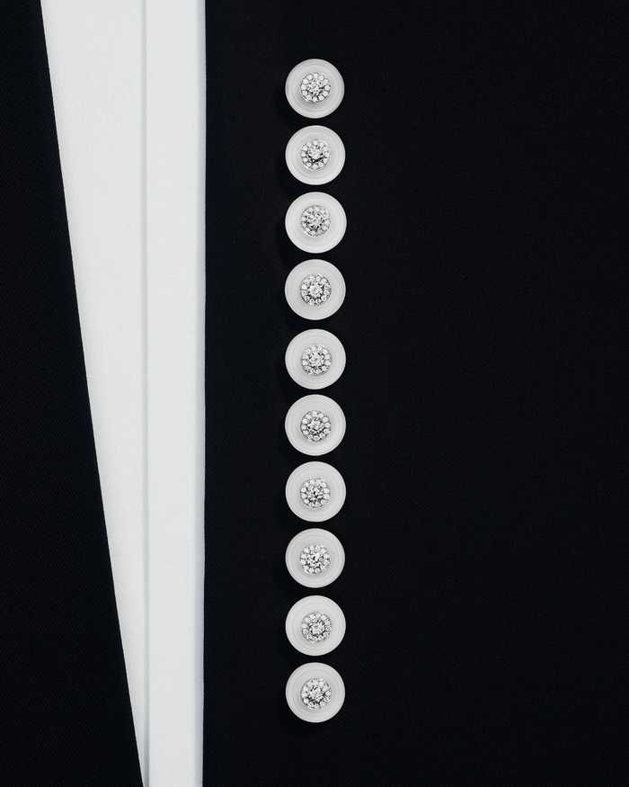 Набор из 16 пуговиц из горного хрусталя и бриллиантов можно носить как по отдельности, так и в различных сочетаниях, например, в качестве украшения для волос, в петлицах или на бархатном чокере.