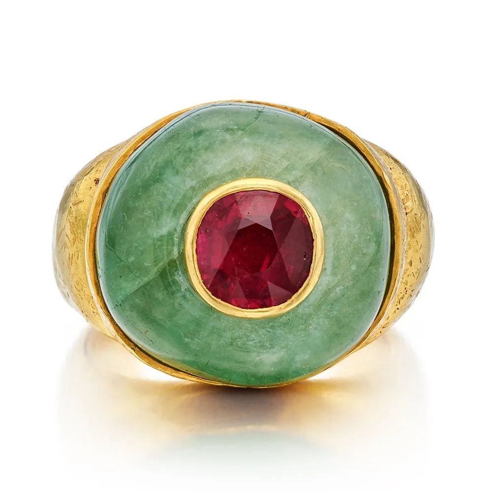 Золотое кольцо с изумрудом и рубином от Сюзанн Бельперрон (любезно предоставлено Sotheby’s):