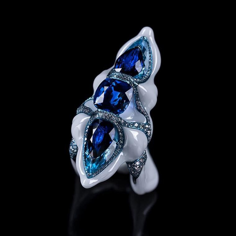 Кольцо New Generation Уоллеса Чана (постоянная коллекция Британского музея). Это первое ювелирное изделие, выполненное с использованием фарфора Wallace Chan Porcelain, для придания прочности этому хрупкому материалу потребовалось семь лет исследований и разработок: