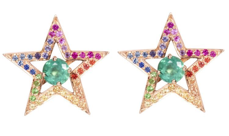 Серьги The Rainbow Star из розового золота с изумрудами и цветными драгоценными камнями от Alice van Cal (Alice van Cal):