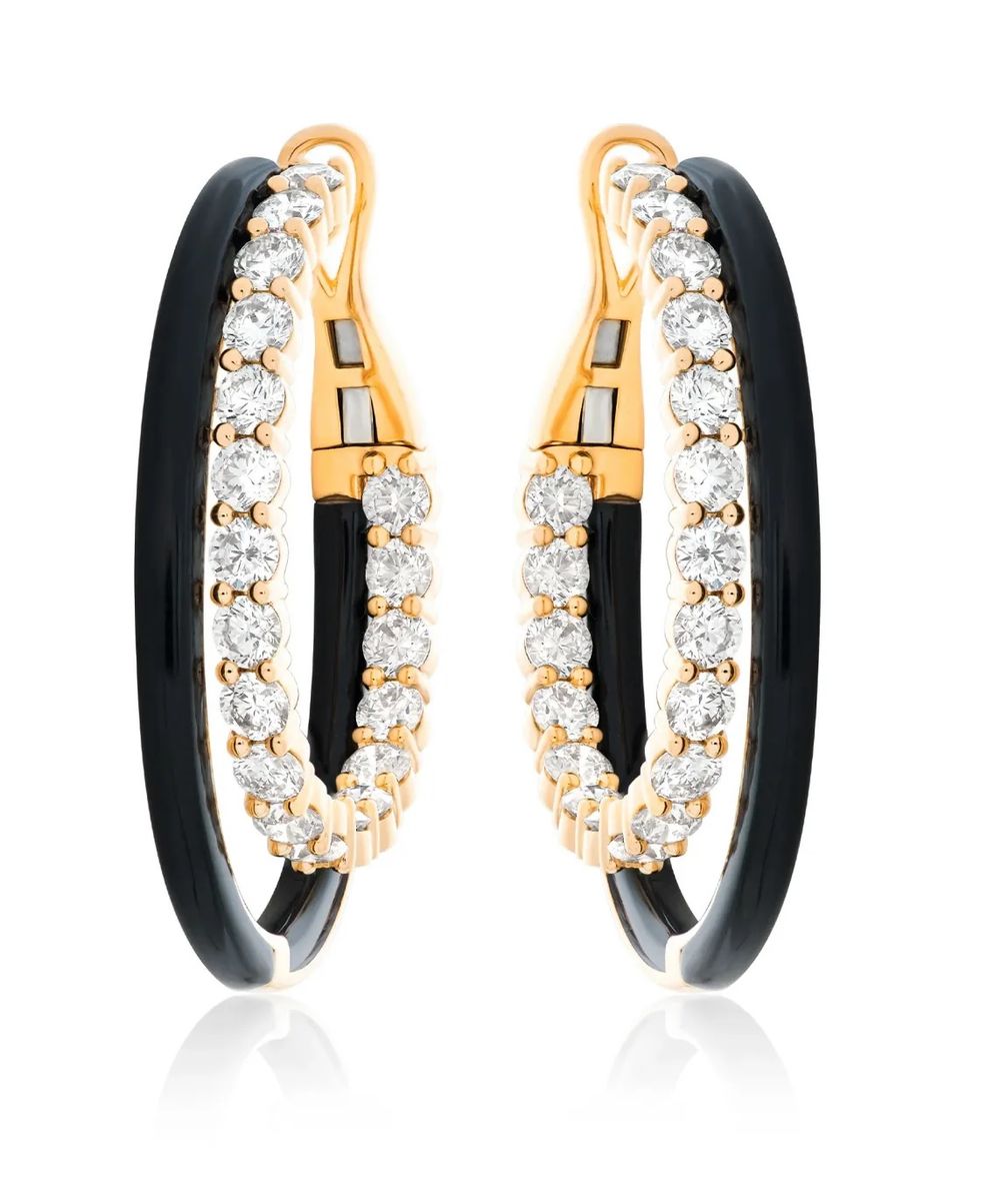 Двойные серьги-обручи с бриллиантами и ониксом от Nicole Rose: