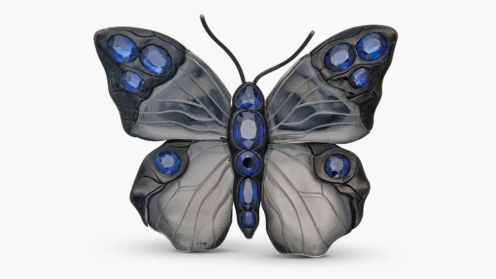 Эта брошь-бабочка из горного хрусталя и сапфиров, созданная JAR примерно в 1987 году, стоила $ 698 500, превысив ожидаемую предпродажную оценку в $ 500 000.