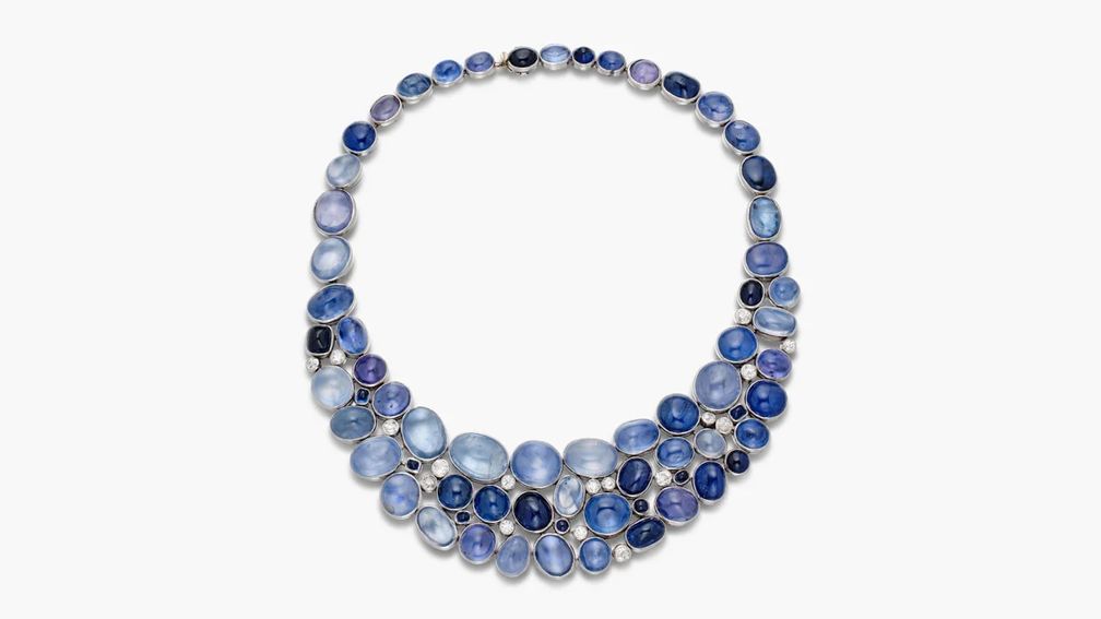 Еще одним колье от Сюзанн Бельперрон, стоимость которого более чем удвоилась, стало изделие 1954 года с сапфирами-кабошонами и бриллиантами старой европейской и старой шахтной огранок. Оно было продано за $ 635 000 против ожидаемой максимальной оценки в $ 300 000.