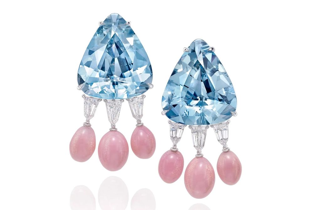 Серьги с жемчугом, аквамарином и бриллиантами: