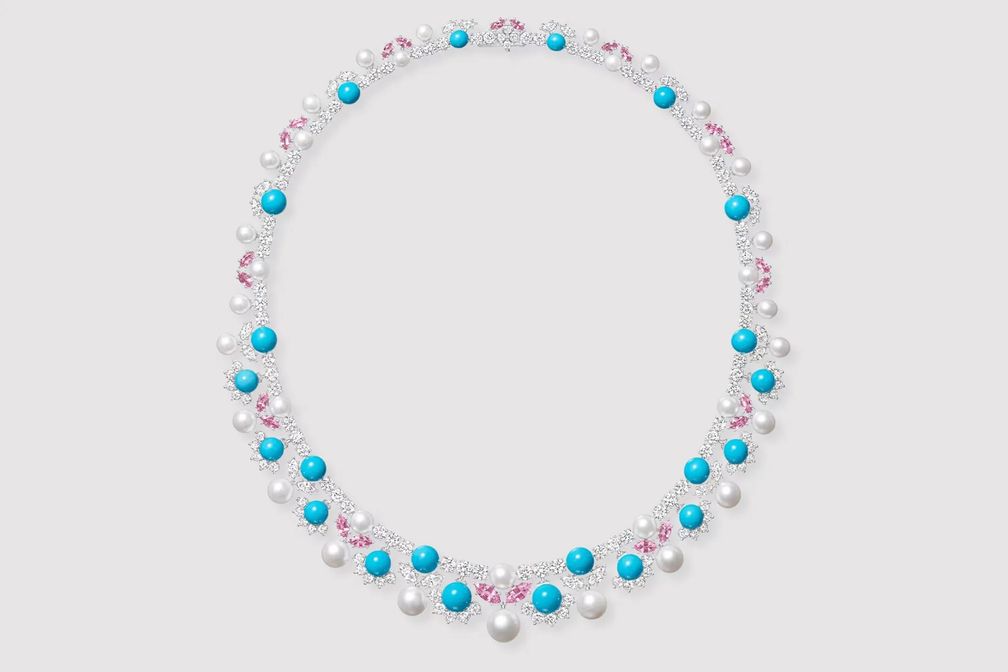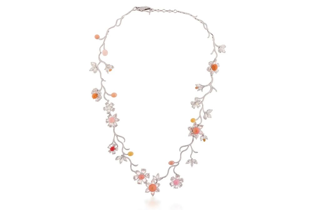 Ожерелье Jaipur из белого и розового золота с бриллиантами и 100 природными жемчужинами Конк: