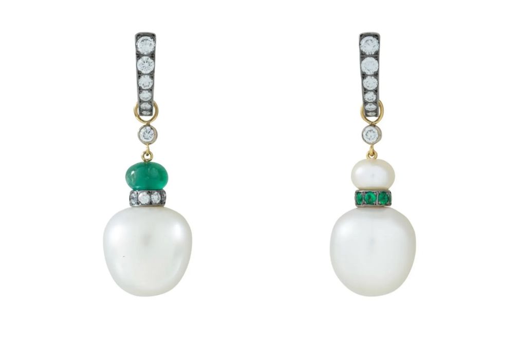 Серьги-обручи с бриллиантами, изумрудами и жемчугом: