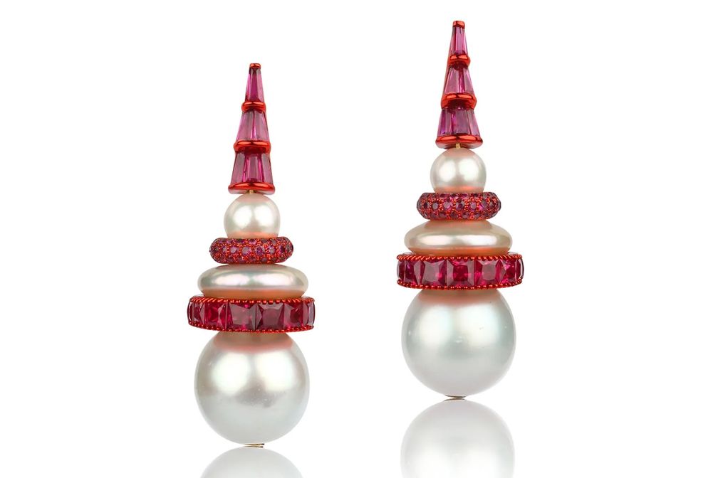 Серьги с рубином и жемчугом: