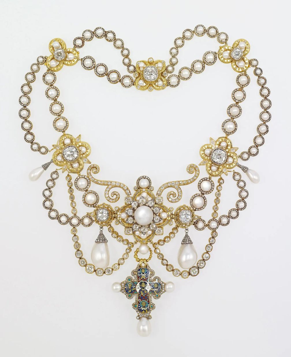 Иногда королевские особы прикладывали руку к дизайну украшений, «заказывая изделия, отправляя их на доработку», говорит Джонс. В качестве примера она привела сложное бриллиантовое колье Dagmar с крестом, которое было подарено Александре, в то время принцессе, кузеном, королем Дании, на ее свадьбу в 1863 году. «Когда оно прибыло в Британию, она отправила его в Garrard и добавила к нему жемчуг, чтобы показать ее личное участие», – сказала она.