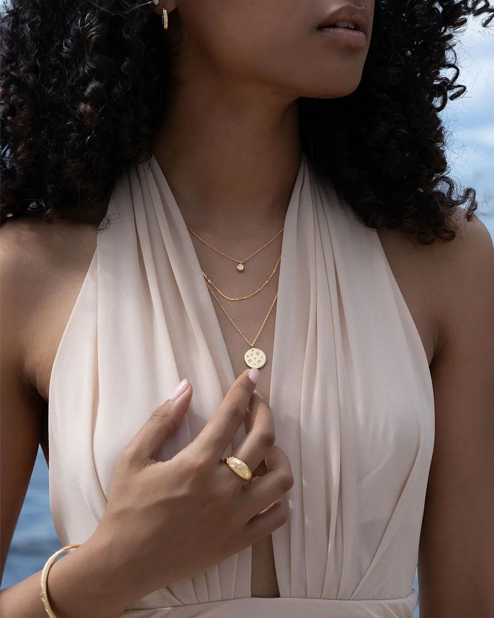 В мягком свете ламп шоурума новейшая коллекция Kleora от Ernest Jones сияет, как сокровище из другой эпохи. И это почти так и есть. Черпая вдохновение в материалах Древнего Египта и Римской империи, дизайнеры Ernest Jones произвели переворот в отрасли, выпустив свою последнюю линию украшений из нового вида металлического сплава Modern Electrum («современный электрум»). Этот металл сочетает в себе «богатство золота, блеск серебра и прочность драгоценного палладия».