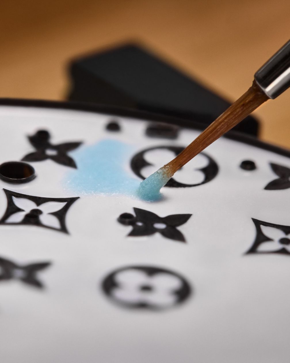 Циферблат Escale au Mont Fuji выполнен с использованием необычайного разнообразия техник эмалирования — Grand Feu, шамплеве, пайонне и миниатюрной эмали, — с применением 33 пастельных оттенков, отражающих мягкий рассвет над горой Фудзи. Каждое нанесение требовало многочисленных обжигов (всего 40), при этом каждый этап представлял риск поломки и необходимости повторного нанесения.