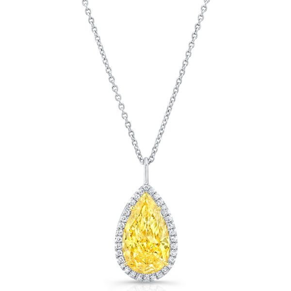 Подвеска грушевидной формы из платины с фантазийным желтым бриллиантом весом 5,68 карата и бриллиантами pavé весом 0,3 карата от Rahaminov: