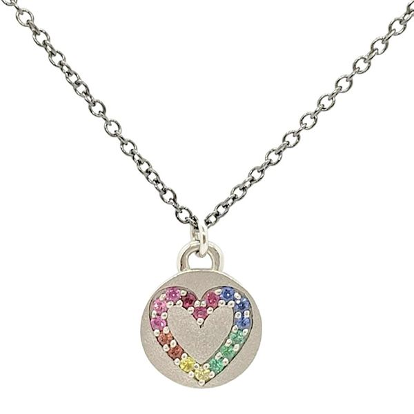 Подвеска Magic Heart disc из платины с радужными драгоценными камнями от Alison Nagasue:
