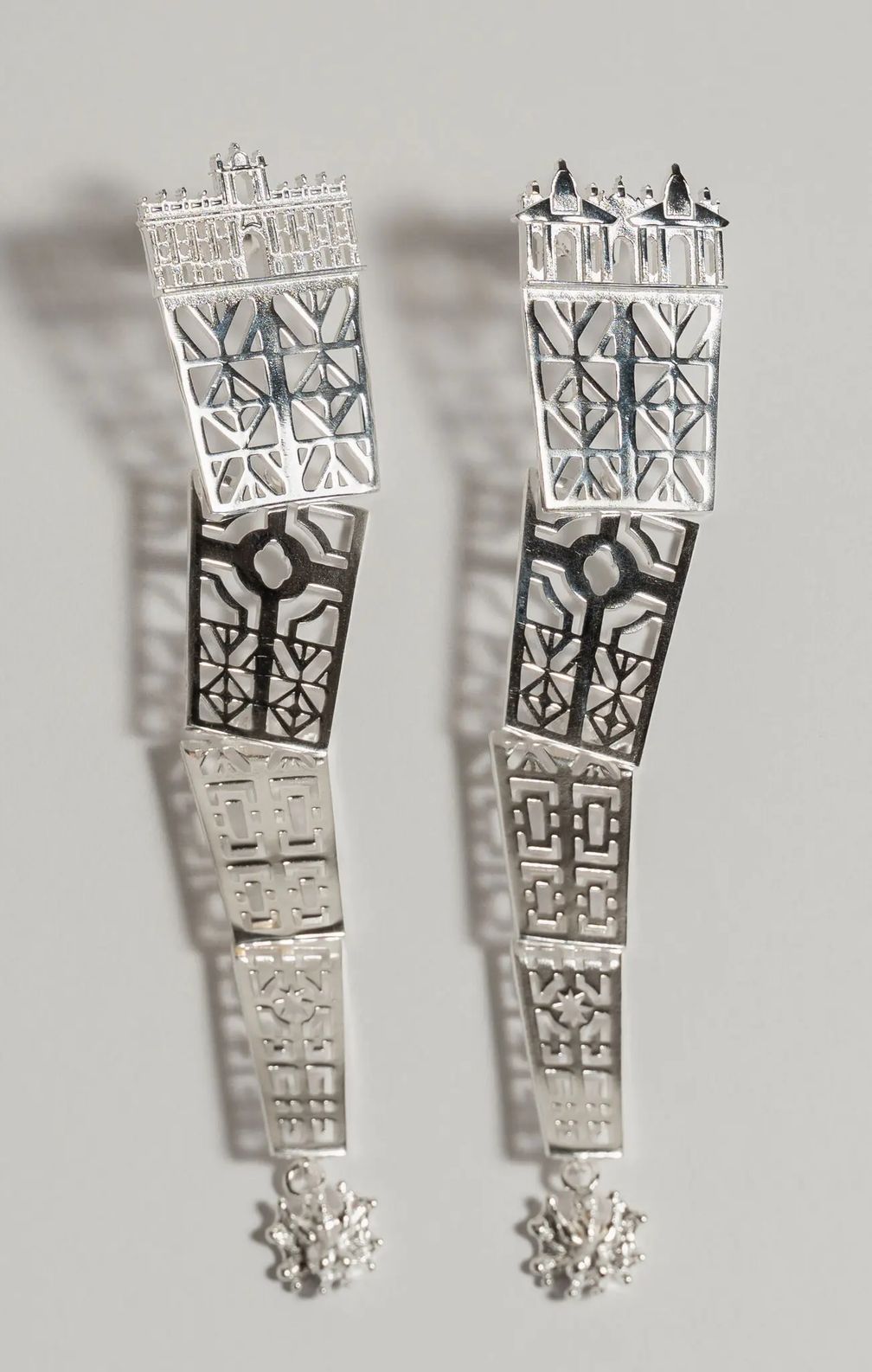 Длинные серьги Galleria Borghese из чистого серебра от Co.Ro. На протяжении многих лет Джаннини и де Чекко черпали вдохновение в разных уголках Италии и за ее пределами (Marta Giaccone for The New York Times):