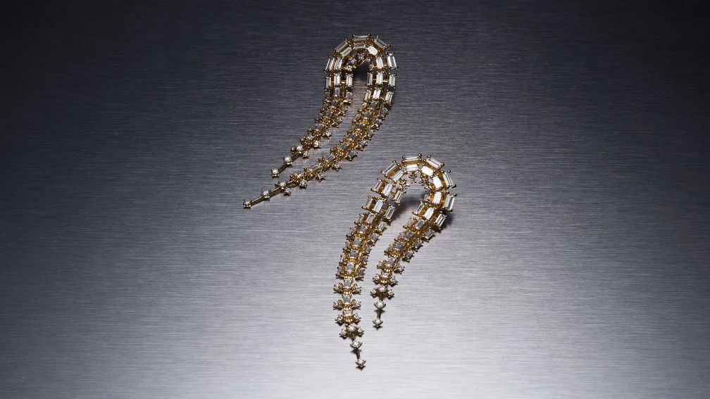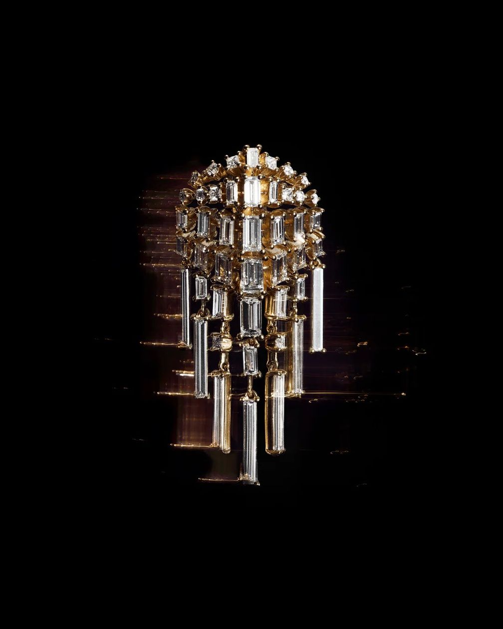 Ювелирный дизайнер исследует возможности багетной огранки в новой коллекции Vertex, которая отсылает к ар-деко и сочетает «геометрию и текучесть».