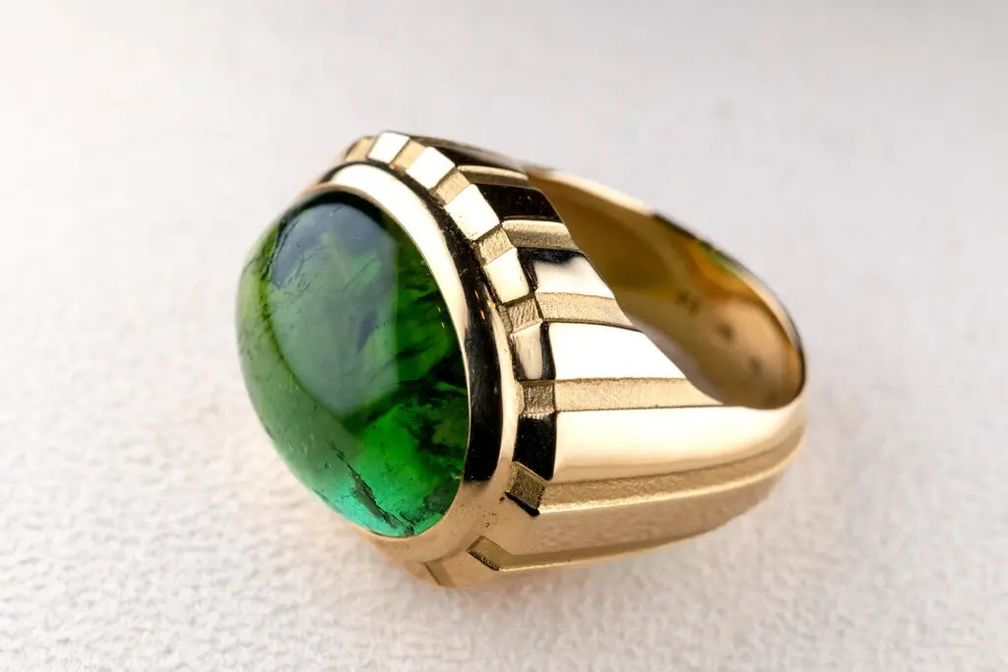 Изящное кольцо с кабошоном зеленого турмалина (Dmitry Kostyukov for The New York Times):