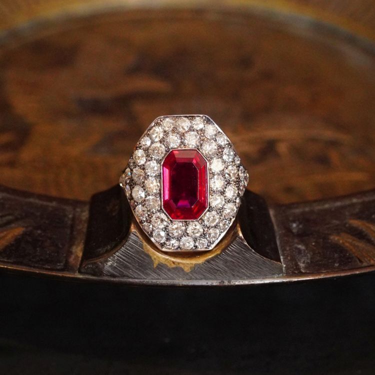 Кольцо из платины и желтого золота в викторианском стиле с рубином весом 2,79 карата и бриллиантами (Nicole Fournier/Jogani):