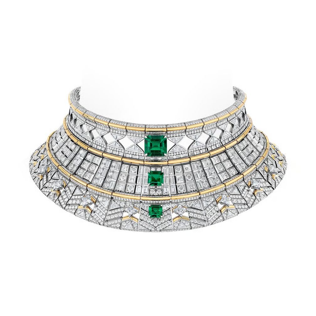 Редкие и яркие драгоценные камни также стали основой коллекции Virtuosity от Louis Vuitton, великолепно представленной в мае на испанском острове Майорка. Яркие украшения, такие как колье-воротник Maestria с мозаичным расположением бриллиантов и колумбийских изумрудов общим весом 8,88 карата, являются изюминкой коллекции.