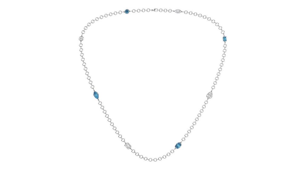 Ожерелье Mulholland от Grown Brilliance выполнено из 18-каратного белого золота с голубыми и белыми лабораторными бриллиантами общим весом 23 карата: