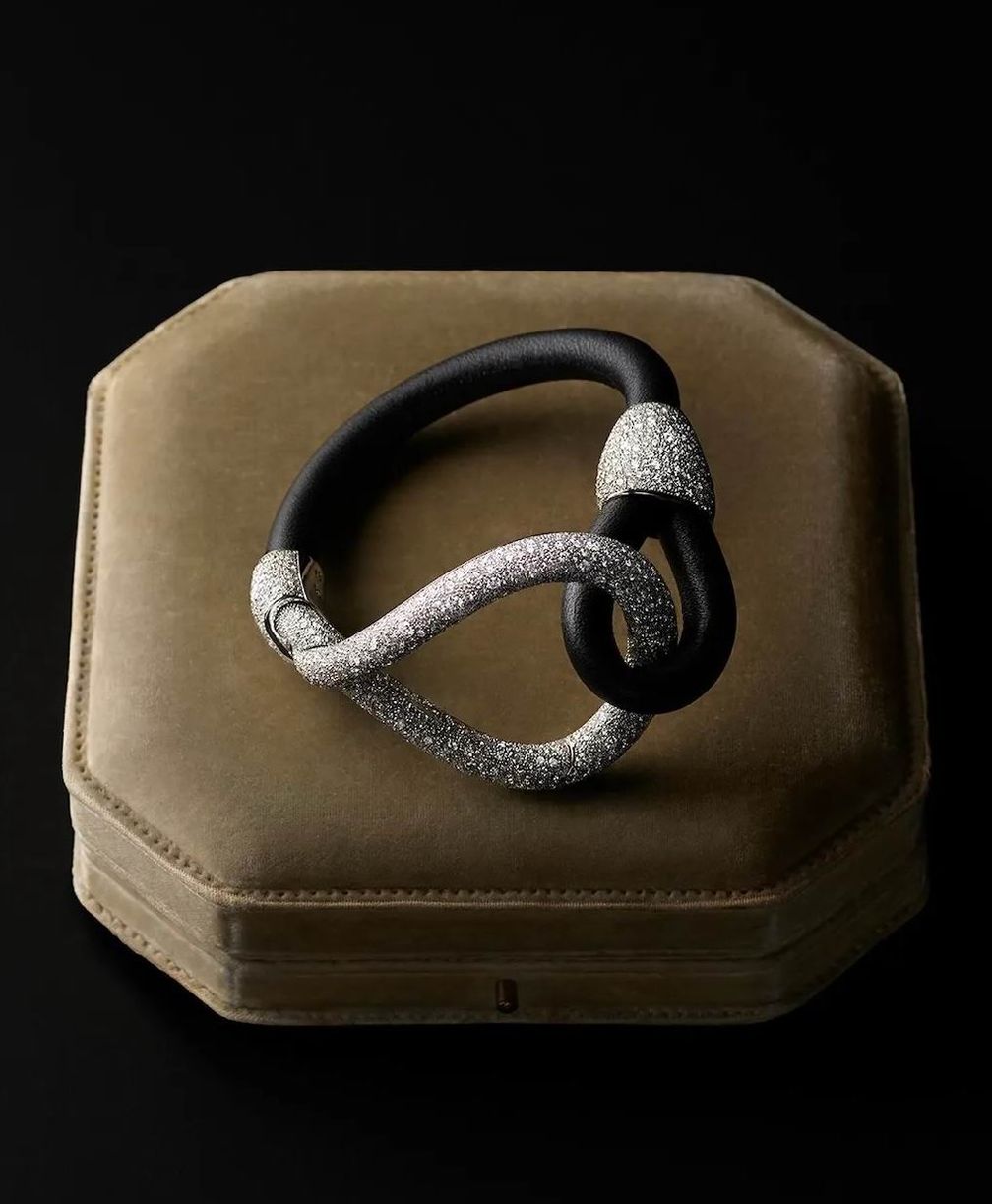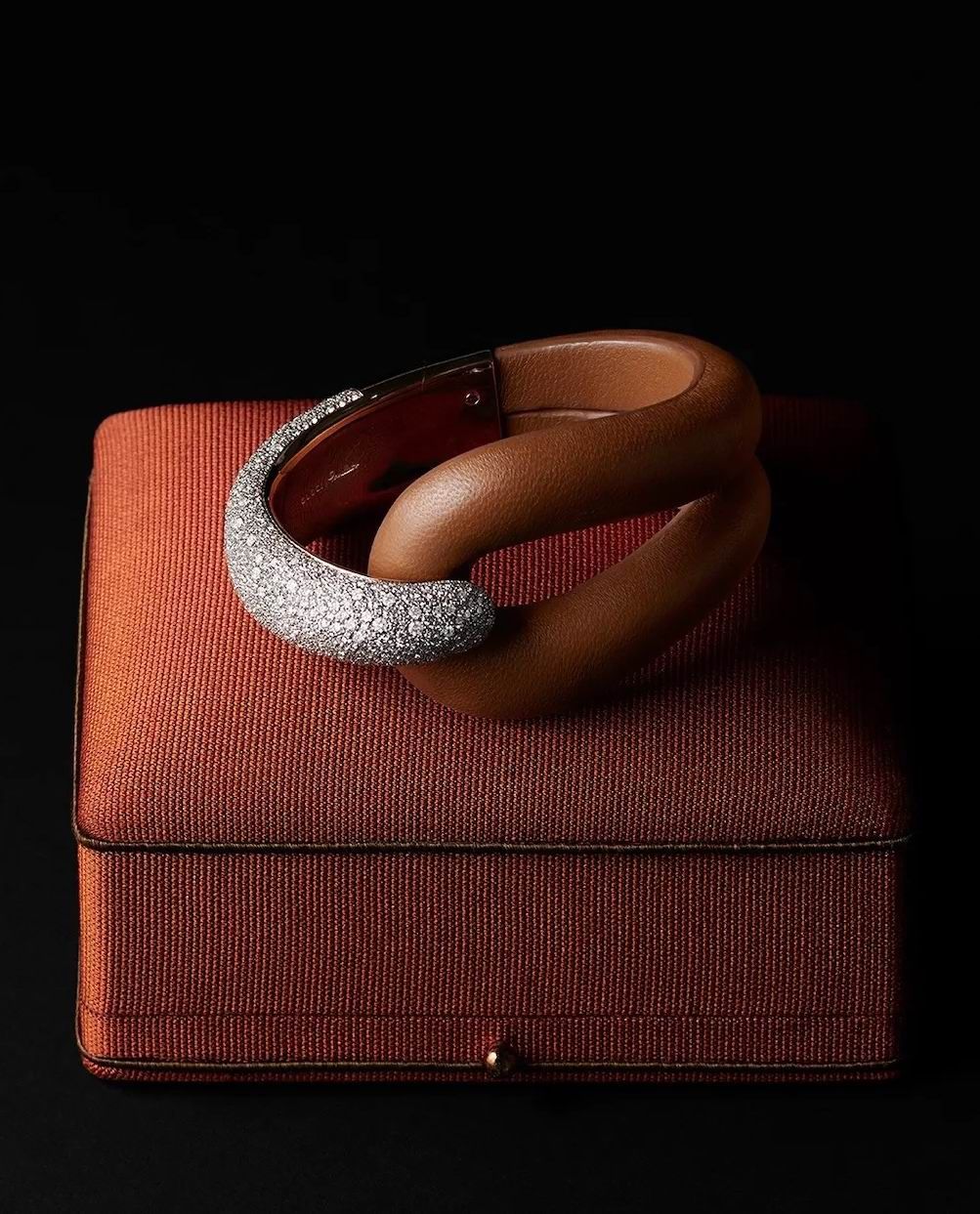 Или возьмите скульптурные браслеты, где черная или коричневая кожа элегантно переплетается с застежками из розового или белого золота, украшенными природными бриллиантами. Это больше, чем аксессуары – это носимое искусство, технические чудеса и дизайнерские достижения, отражающие лучшее от обоих брендов.