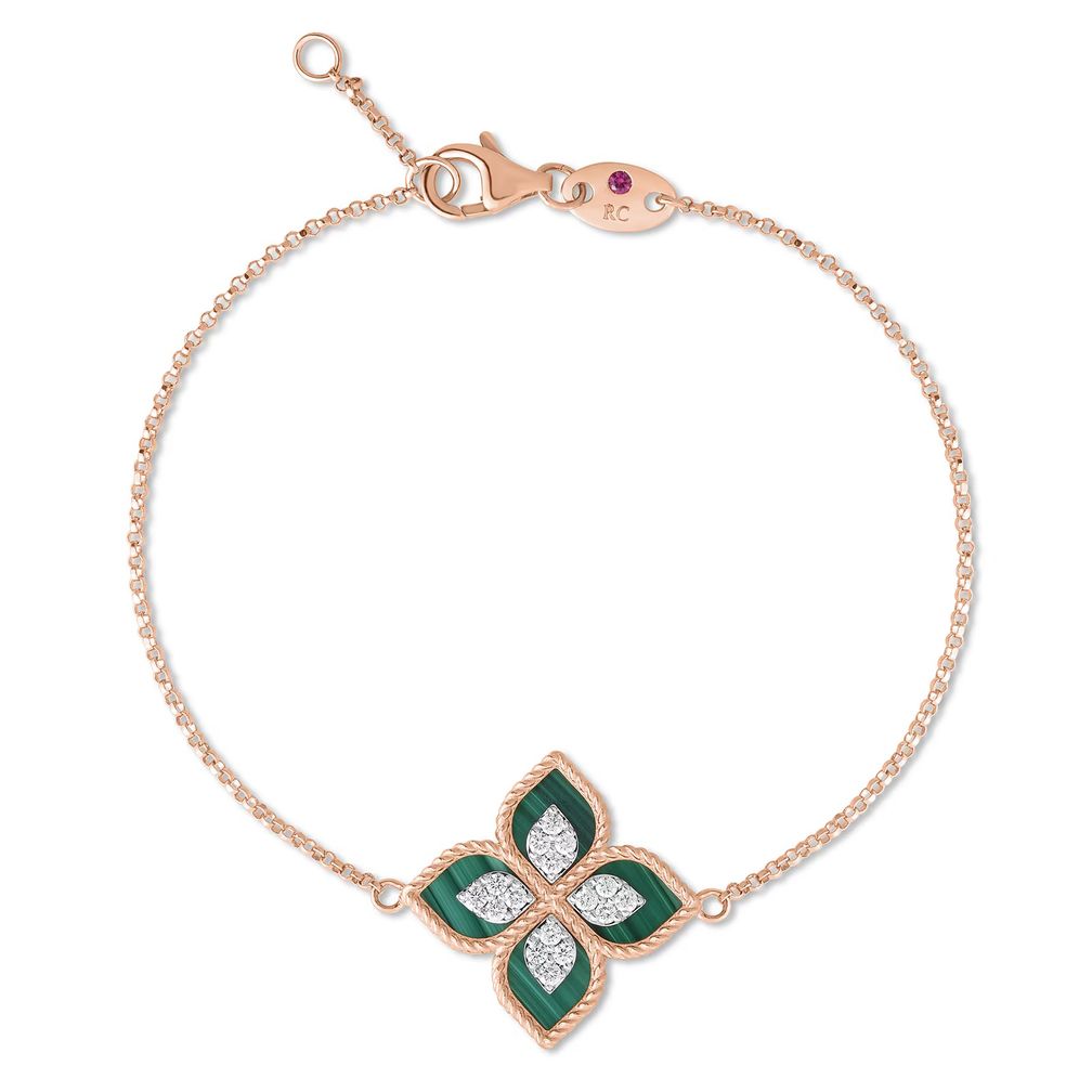 Браслет Princess Flower из 18-каратного розового золота с бриллиантами и малахитом: