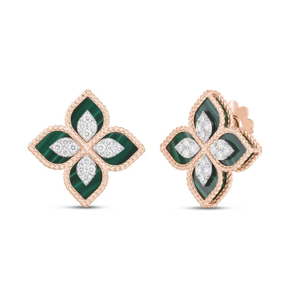 Серьги Princess Flower из 18-каратного розового золота с бриллиантами и малахитом: