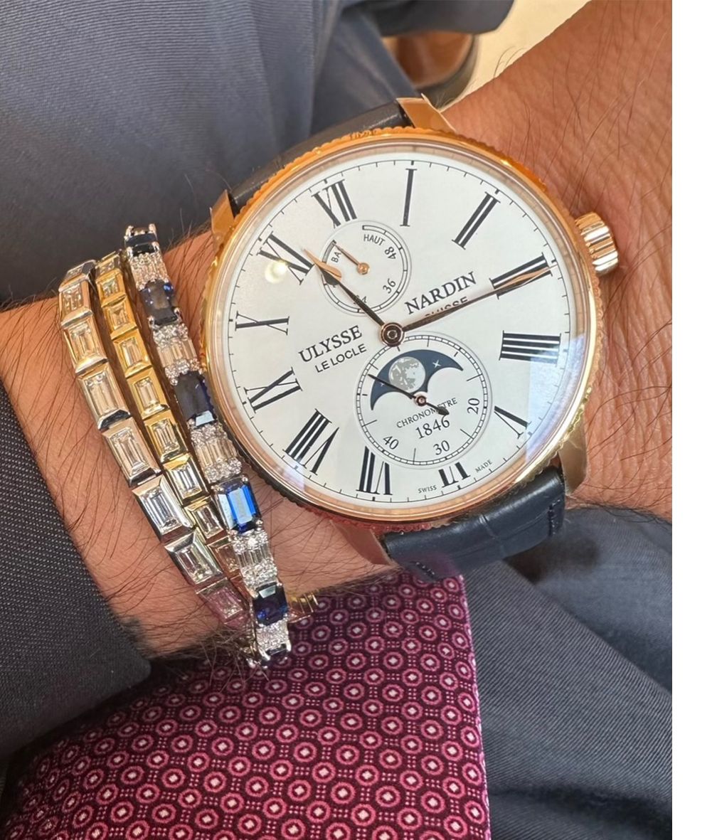 Роскошные часы, такие как Patek Phillippe, Audemars Piguet или Rolex, – это прекрасно, но для смелого сочетания не обязательно иметь роскошные часы. Вы также можете подумать, что смарт-часы находятся под запретом; однако их практичность в сочетании с бриллиантовым браслетом так же шикарна, как теннисное ожерелье в спортзале.